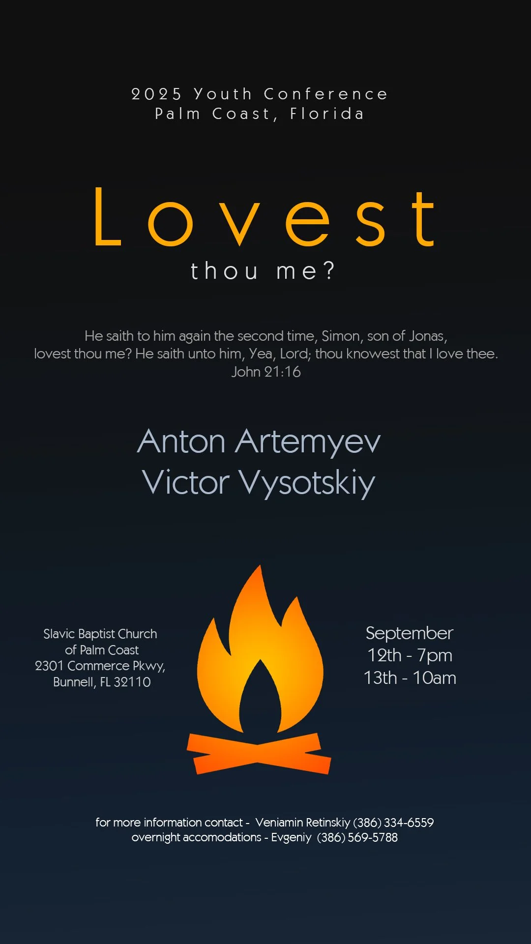 Please fill out the following form below to register for the Slavic Baptist Church of Palm Coast 2025 Youth Conference.